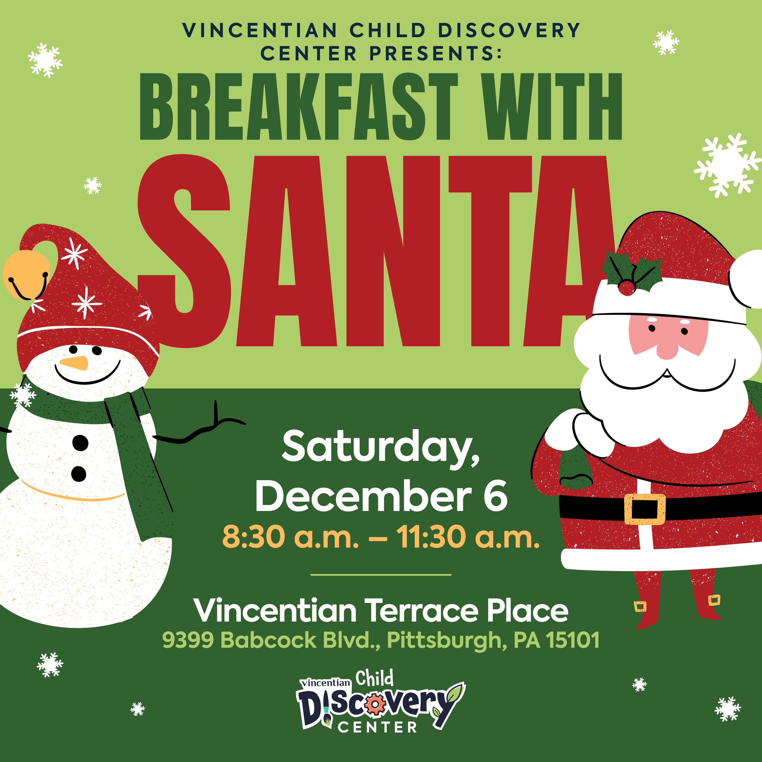 Vincentian Child Discovery Center McCandless Presents the Breakfast with Santa. Join us for a magical morning of holiday fun, festive breakfast favorites, photos with Santa, and joyful memories for the whole family! Stay tuned for ticket information and event details coming soon! Location: Terrace Place at Vincentian, 9399 Babcock Blvd., Allison Park, PA Get…